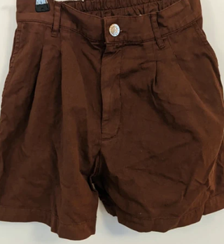 Pantalones cortos de color marrón. - Diseño con pinzas delanteras. - Cintura elástica. - Cierre de botón y cremallera.