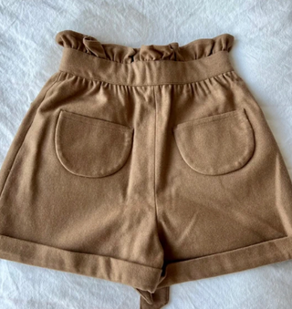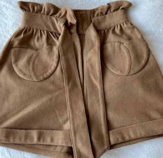 Pantalones cortos de tela con cinturón. - Cintura alta con cinturón anudado. - Bolsillos delanteros. - Dobladillo en los bajos.