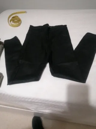 Pantalones de invierno con un diseño texturizado. -Por la parte delantera, la tela imita la piel de serpiente, por la parte trasera es lisa. -A la altura del tobillo lleva una abertura con cremallera. - Bolsillos chinos. - Abertura con cremallera lateral. - Dan talla, valen para una 38/ 40. -Son cómodos y de abrigo