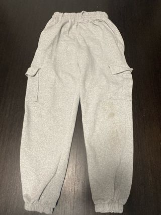 Pantalones tipo cargo de color gris. Cuentan con bolsillos laterales y cintura elástica. - Tejido suave y cómodo. - Cintura con cordón ajustable. - Bolsillos cargo en los laterales.