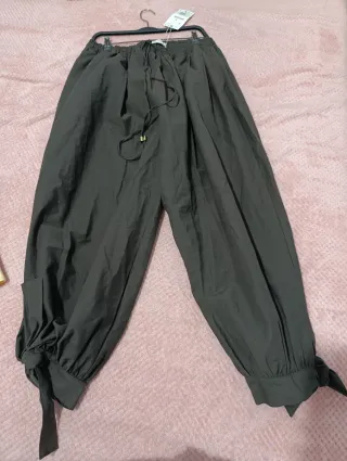 Pantalón estilo bombacho de Zara. Nuevos ,con etiqueta.Tallan grandes ,dan talla.Ver medidas en las fotos. - Diseño holgado. - Cintura elástica con cordón. - Puños ajustados con lazada.