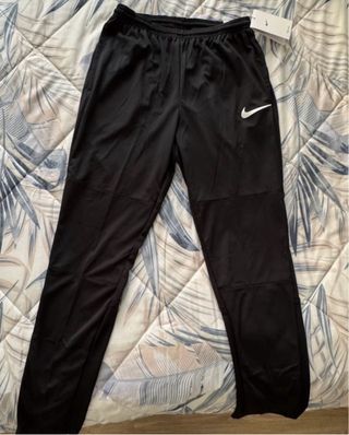 Pantalón deportivo de la marca Nike en color negro. - Talla S. - Diseño moderno con paneles. - Logo de Nike visible. Se vende nuevo sin usar debido a que fue un regalo de un outlet y no se puede devolver.