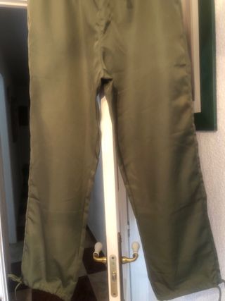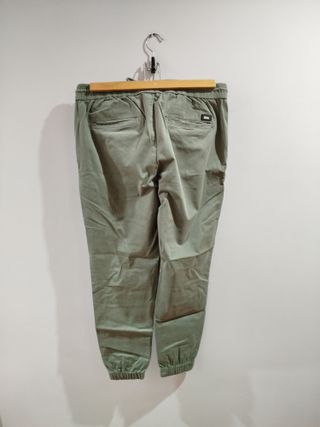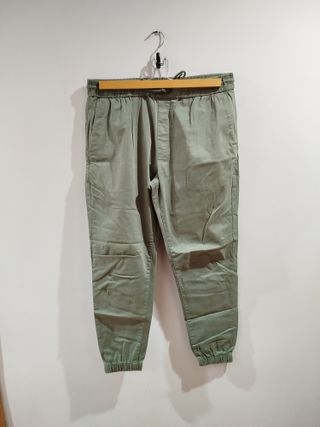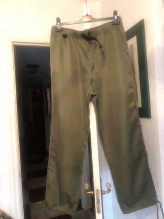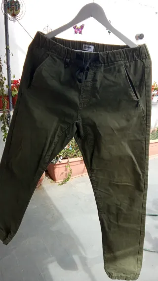 Pantalón largo de color verde oliva, ideal para salir. - Cintura elástica con cordón. - Bolsillos laterales. - Diseño monocromático.