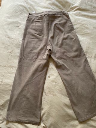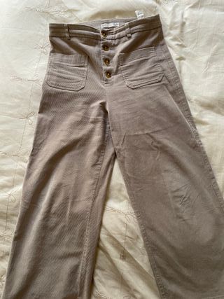 Pantalón de pana para mujer en color beige. Diseño moderno y cómodo. Es una 38 pero grande, equivss a lente a 40 o 42 - Cintura alta con cierre de botones. - Bolsillos delanteros. - Pierna ancha.