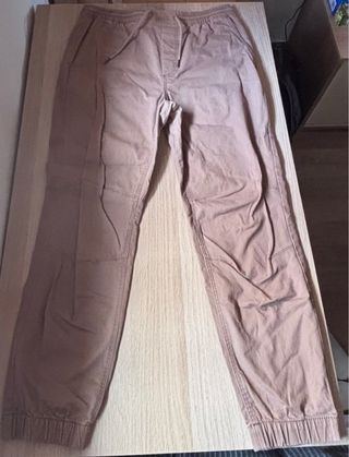Pantalones casuales de color beige, perfectos para el día a día. - Cintura elástica con cordón. - Puños ajustados. - Bolsillos laterales.