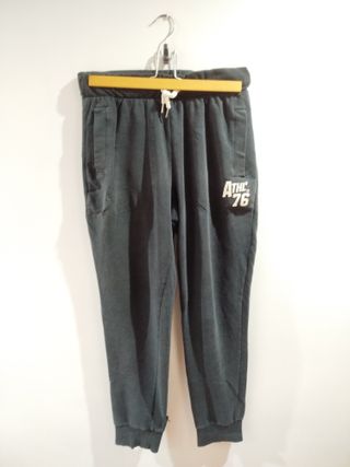 Pantalón deportivo largo para hombre. - Cintura con cordón. - Bolsillos laterales. - Estampado Athl 76 en la pierna. - Tiene un roto en el tobillo derecho. Más información pregunte sin compromiso. Se hacen lotes de productos y ofertas por estos. Los precios individuales no son negociables.