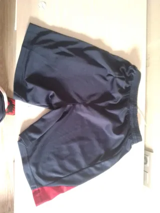 Pantalón corto deportivo. - Diseño con dos rayas laterales blancas. - Cintura elástica con cordón ajustable. - Tejido cómodo para el deporte. - Tiene un pequeño roto interior en un bolsillo. Más información pregunte sin compromiso. Se hacen lotes de productos y ofertas por estos. Los precios individuales no son negociables.