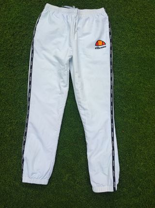 Pantalón deportivo de la marca Ellesse con detalles de logo en las laterales. - Cintura elástica con cordón. - Puños ajustados en los tobillos. - Cinta lateral con logo repetido. Talla M. Posibilidad de envío o entrega en mano en Madrid o Aranjuez.