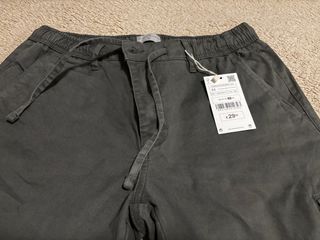 pantalones de zara negros estilo formal/traje y pero con bolsillos (estilo cargo). similares a los de pinza. usados muy poco. cintura elástica, quedan anchos pero además en las piernas también es algo elástico. acabado ancho. sin cremallera y con bolsillos. talla XL