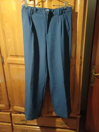 Pantalón de estilo deportivo en color azul. - Cintura elástica. - Puños ajustados. - Detalle de cremallera lateral. - Pone XL pero yo soy una talla M de mujer y me queda un poco ancho nada más.