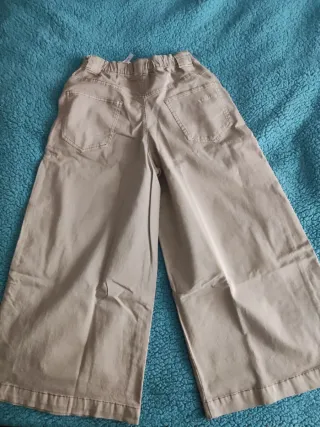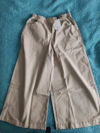 Pantalón de corte ancho en color beige. - Cintura elástica. - Bolsillos laterales.