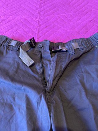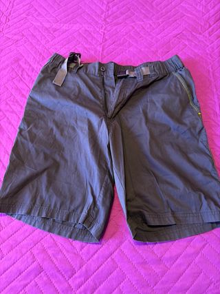 Pantalón corto de la marca Quechua en color verde oliva. - Cintura elástica con ajuste. - Cierre de botón y cremallera. - Trabillas para cinturón. - Bolsillos laterales.
