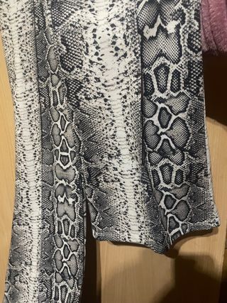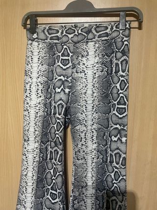 Pantalón palazzo con estampado de serpiente y lazo en la cintura. - Estampado de serpiente en tonos beige y negro. - Lazo decorativo en la cintura. - Corte palazzo ancho con plisado