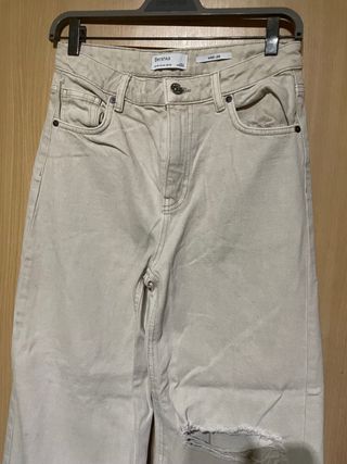 Pantalones vaqueros anchos de Bershka con un estilo desgastado y moderno. - Corte ancho y holgado. - Detalle de rotos y desgastes. - Lavado de mezclilla clásico.