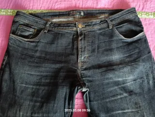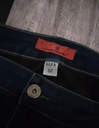 Buen estado. Prácticamente la misma talla como se ve en la foto número 2, aunque el vaquero es una 34 y el de pana, una M (más bien escasa). Son rectos, pero no demasiado anchos.