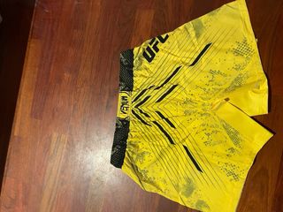 Pantalones de lucha UFC Venum, nuevos y sin usar. Perfectos para entrenar o competir. - Diseño llamativo en amarillo y negro. - Cintura elástica para un ajuste cómodo. - Logotipo de UFC en la cintura. - Estampado gráfico distintivo en las perneras.