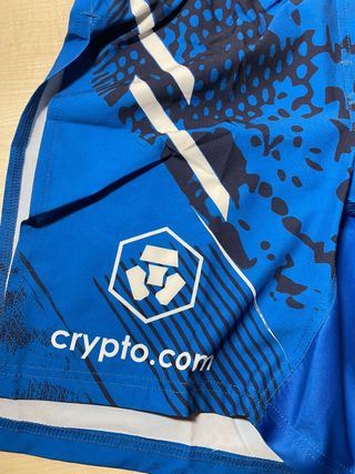 Pantalones de lucha UFC Venum sin usar. - Diseño moderno con estampado. - Cintura elástica para mayor comodidad. - Logotipo de UFC en la cintura. - Logo de Venum en la pierna derecha. - Logo de crypto.com en la pierna izquierda.