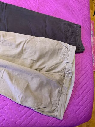 Conjunto de dos pantalones chinos. - Un pantalón de color negro. - Un pantalón de color beige. Uno de la marca dustin y el otro springfield