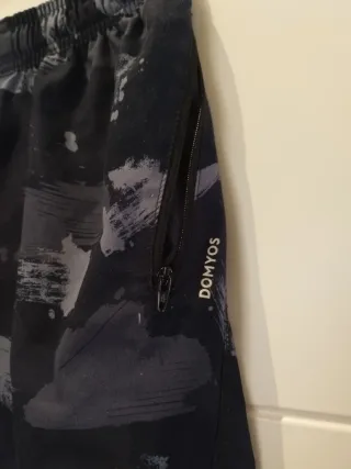 Pantalón corto deportivo con un diseño moderno y llamativo. - Estampado abstracto en tonos oscuros. - Cintura elástica para mayor comodidad. - Tejido ligero y transpirable.