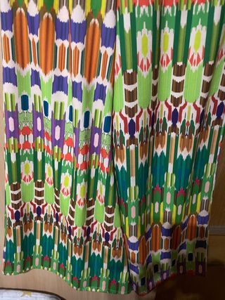 Conjunto de blusón con estampado geométrico y pantalón palazzo. - Blusón con mangas largas y cuello redondo. - Pantalón de corte ancho con goma en la cintura y bolsillos laterales Marca de talla una 2XL curvy que equivale a una 50-52