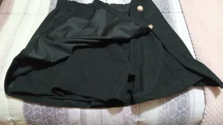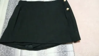 Falda pantalón de color negro con un diseño moderno. - Detalle de botones dorados en el lateral. - Tejido con textura. Es Pana. Finita