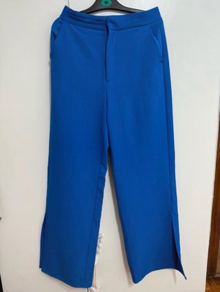 Pantalón de vestir de Stradivarius en color azul. - Corte recto. - Bolsillos laterales. - Aberturas en los bajos.