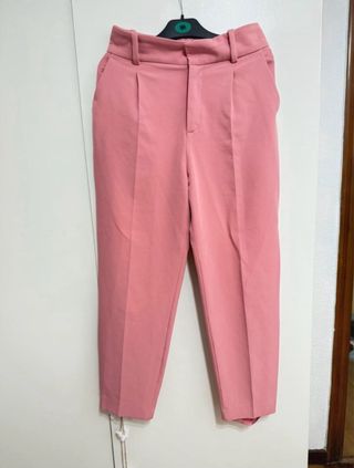 Pantalón de vestir de Zara en color rosa. - Corte recto. - Cintura alta. - Pinzas delanteras.