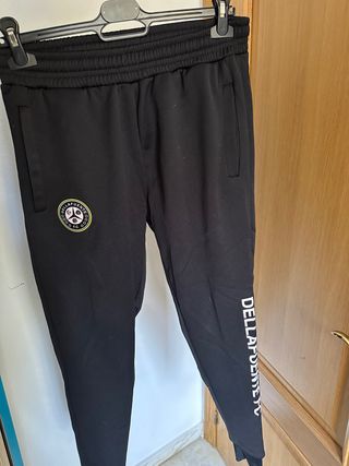Pantalón deportivo de la marca Dellafuente. - Color negro. - Logo circular en la pierna izquierda. - Inscripción vertical DELLAFUENTE en la pierna derecha.