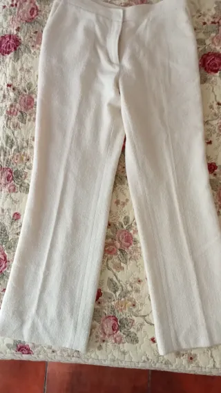 Conjunto de pantalones de Zara en dos colores. - Pantalones vaqueros azules con detalle de tachuelas. - Pantalones de tela color blsnco con cintura elástica. El precio del Azul 9 euros El precio del blanco 8 euros Los dos por 15 euros