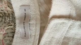 Pantalón elegante de la marca Purificación Garcia. Color crema. - Corte recto. - Tejido texturizado.