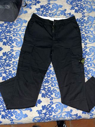 Pantalones cargo de la marca Stone Island en color negro. Diseño moderno y funcional. - Bolsillos cargo laterales. - Parche distintivo de la marca en el bolsillo.