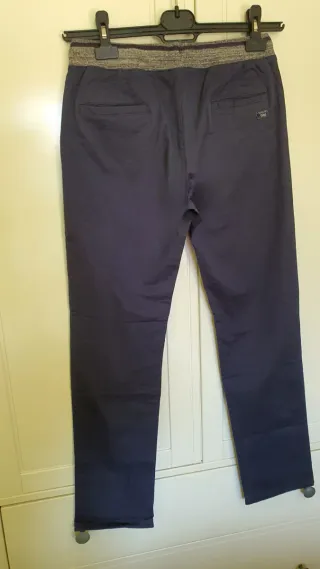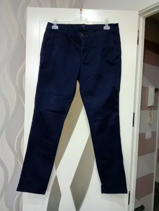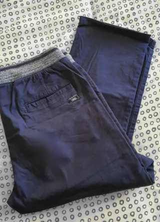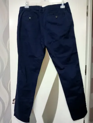 Pantalón de corte chino para hombre. Mide 46 de cintura y 107 de largo. Bolsillos delanteros y traseros. - Color azul marino.