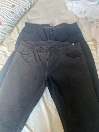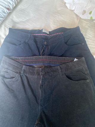 Se venden dos pantalones de pana. - Un pantalón de color negro. - Un pantalón de color gris.