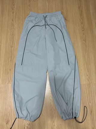 Pantalón de chándal de color gris con un diseño moderno y detalles en negro. De muy buena calidad - Cintura elástica con cordón ajustable. - Diseño con líneas curvas en contraste. - Puños ajustables con cordón. Si necesitas medidas o cualquier cosa escribeme. ☺️