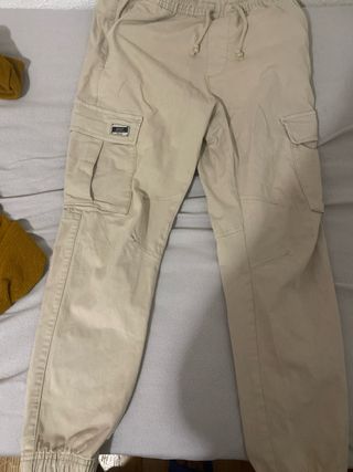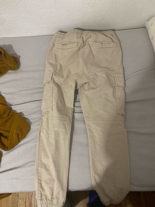 Pantalones cargo de Zara en color beige. Son cómodos y prácticos. - Cintura con cordón ajustable. - Bolsillos cargo en los laterales. - Puños elásticos en los tobillos.