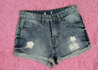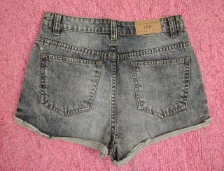 Pantalones cortos vaqueros de la marca SHN. - Diseño clásico de cinco bolsillos. - Acabado desgastado. - Cintura alta. - Bajo deshilachado.