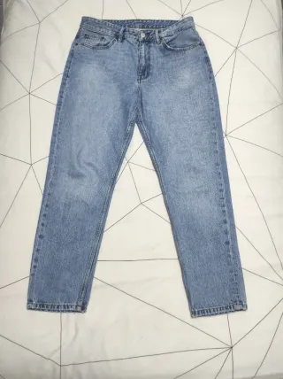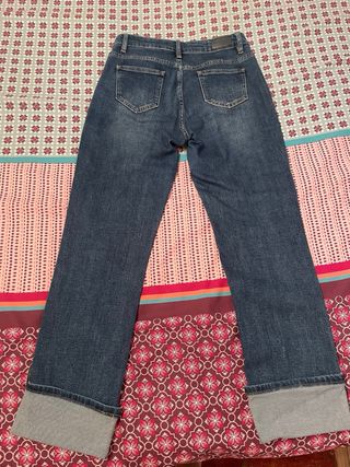 Pantalones vaqueros de corte campana, en buen estado. Se venden porque quedan grandes. - Tono azul clásico. - Bajo deshilachado.