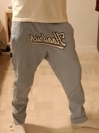 Pantalón de chándal con un diseño moderno y cómodo. - Logo de Hoodrich bordado en la parte delantera. - Cintura elástica con cordón ajustable. - Puños ajustables en los tobillos. - Talla S, pero podría servir como XS sin problema.