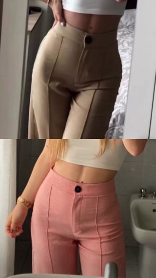 Pack de dos pantalones rectos, uno en color rosa y otro en beige. Son cómodos y versátiles. - Corte recto. - Cierre de botón y cremallera.