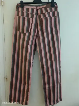 Pantalón de rayas verticales de la marca Zara. - Diseño con rayas verticales. - Combinación de colores marrón y rosa. Viral a estrenar.