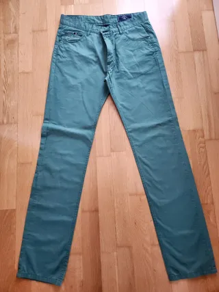 Pantalón estilo chino de la marca Springfield. - Corte recto. - Cierre de cremallera y botón. - Bolsillos delanteros y traseros. - Talla W32 L34 Nuevo.