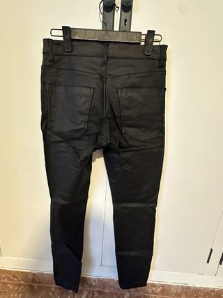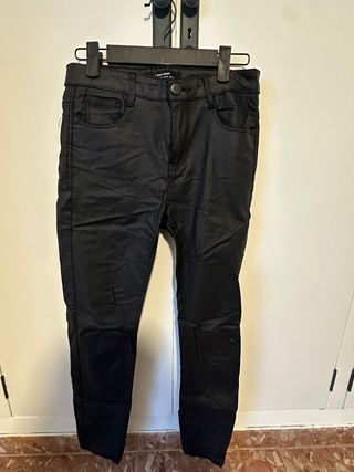 Pantalones con acabado que imita la piel. - Diseño de tiro alto. - Corte ajustado. Puestos en tan solo dos ocasiones. Envio maximo en 24h