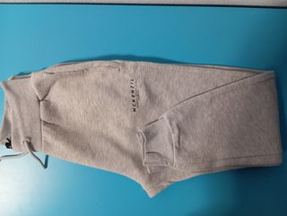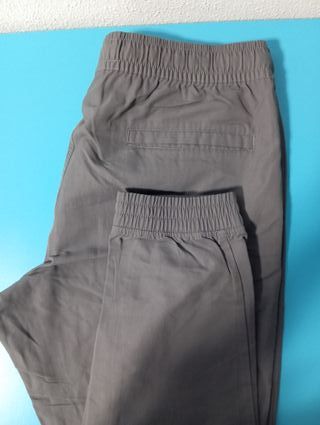 Pantalón de chándal gris de la marca Kiabi. - Cintura con cordón ajustable. - Tejido suave y cómodo.