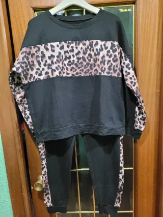 🔥CONJUNTO CHÁNDAL MUJER LEOPARDO TALLA ÚNICA.🔥 - Conjunto de chándal para mujer con estampado de leopardo en color negro. - Diseño de 2 piezas modernas con cintura ajustable y 2 bolsillos laterales. - Banda con estampado de leopardo en la parte superior. - Paneles laterales con estampado de leopardo en los pantalones. - Detalle de puños elásticos y tobillos para mayor comodidad. - Marca-Fabricado: Kiabi-China. - De axila mide: 62 CM; de bíceps mide: 20 CM y de muslo mide: 28 CM. - Camisa mide: anchura (54 CM); altura (60 CM). - Pantalón mide: anchura (36 CM); altura (93 CM). - Peso: 536 GR. 🔴SE HACEN LOTES TAMBIÉN.🔴