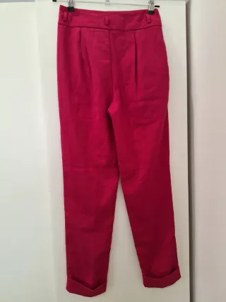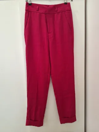 Pantalón de vestir Stradivarius en color fucsia. - Corte recto. - Cintura alta. - Dobladillo en el bajo.