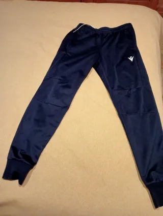 Pantalones de chándal Macron en color azul marino. Talla M. - Diseño deportivo. - Cintura elástica con cordón. - Puños ajustados en los tobillos.