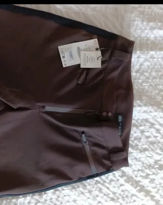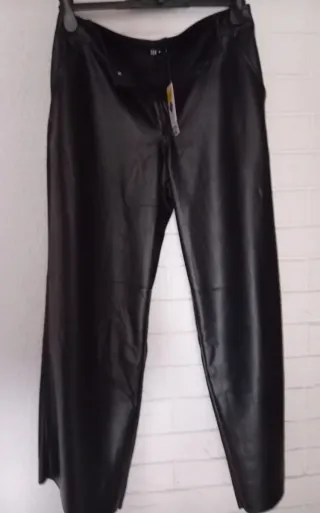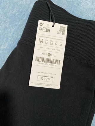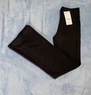 Precio en tienda: 19,99€ En su bolsa original Medidas de cintura y largo en las ultimas fotos - Pantalones leggings de color negro, tienen un diseño de tiro alto y pierna ajustada que se ensancha en el bajo, creando un efecto acampanado o "flare". Cuentan con una cinturilla ancha y elástica para mayor comodidad y adaptabilidad. Están confeccionados en un tejido elástico, frecuentemente una mezcla de viscosa y elastano, que proporciona un ajuste moderado y suave.
