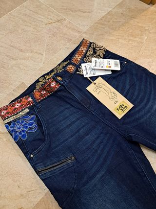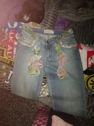 A estrenar con etiqueta 🏷 original. Se estira, es elástico. Con lindos bordados de flores y apliques de fantasía en bolsillos delanteros. Modelo boyfriend. Me voy de vacaciones, aprovecha. Sacaré mis artículos en unos pocos dias. Envío rápido