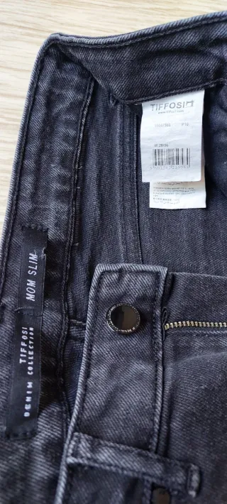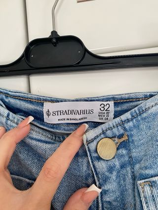 Precio en tienda: 25,99€ En su bolsa original (ultima foto) Medidas de cintura y largo en las ultimas fotos Vaqueros 1460 Mom Fit de Stradivarius • Modelo: Mom Fit (ajustados en la cintura, pierna recta y tiro alto) • Código/Referencia: 1460 • Material: Mezcla de algodón (el material exterior es 100% algodón) • Características: Diseño de cinco bolsillos у cierre frontal con cremallera y botó