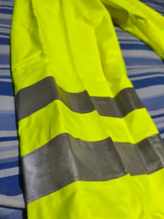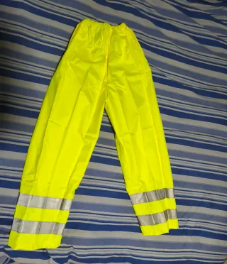 Pantalón de alta visibilidad con detalles reflectantes en los bajos. - Color amarillo fluorescente. - Bandas plateadas reflectantes.
